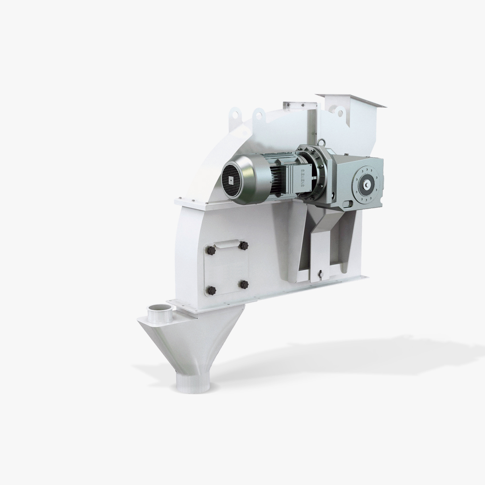The elevator consist of buckets hanged on a belt carrier, which moves the product in vertical direction. The bottom head is the product inlet which has also a belt tensioning unit, while the top head of the elevator is the outlet on which the main drive motor is also placed.