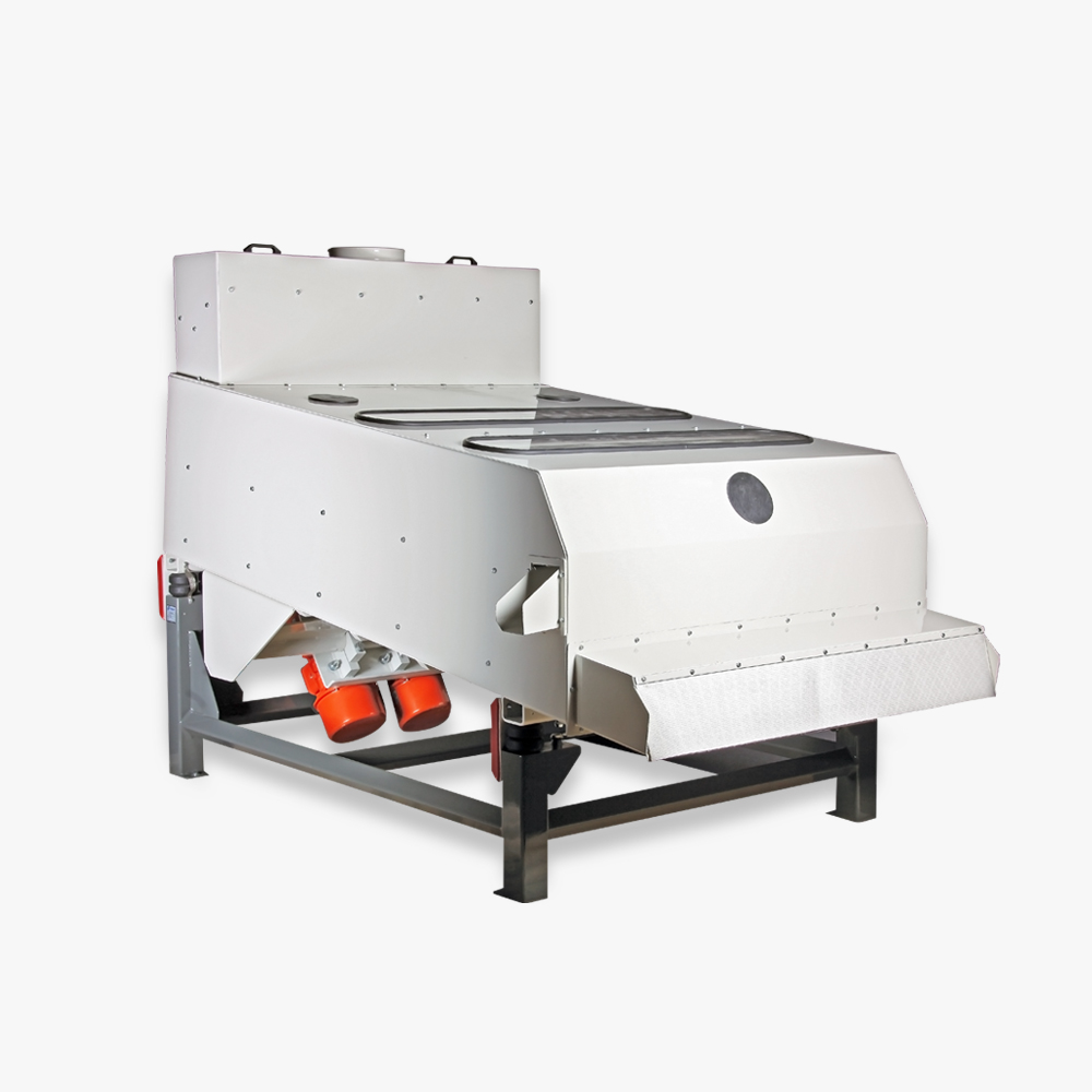 Grain Separator machine has a vibrating body, supported by elastic shock-absorbing elements. Vibration process is maintained by means of two vibro-motors, which are placed at the back to save space. With adjustable screen angle can also be used as a multilateral grain-cleaning machine for different types of products.